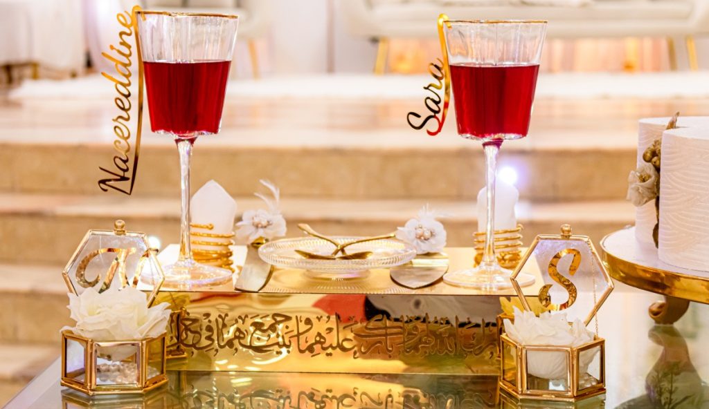 - Deux verres personnalisés avec les prénoms des mariés : parfaits pour porter un toast en l’honneur de votre engagement.