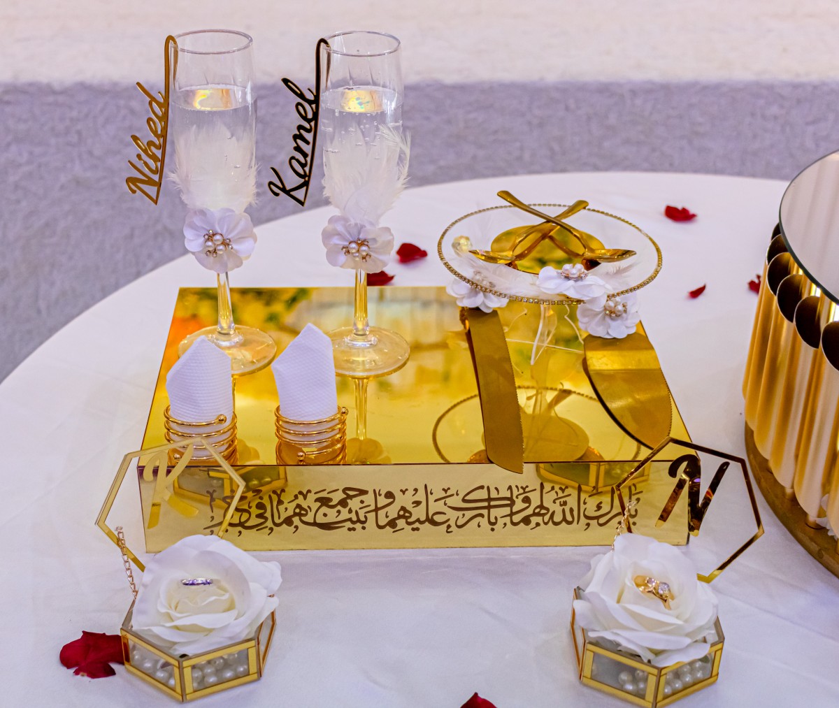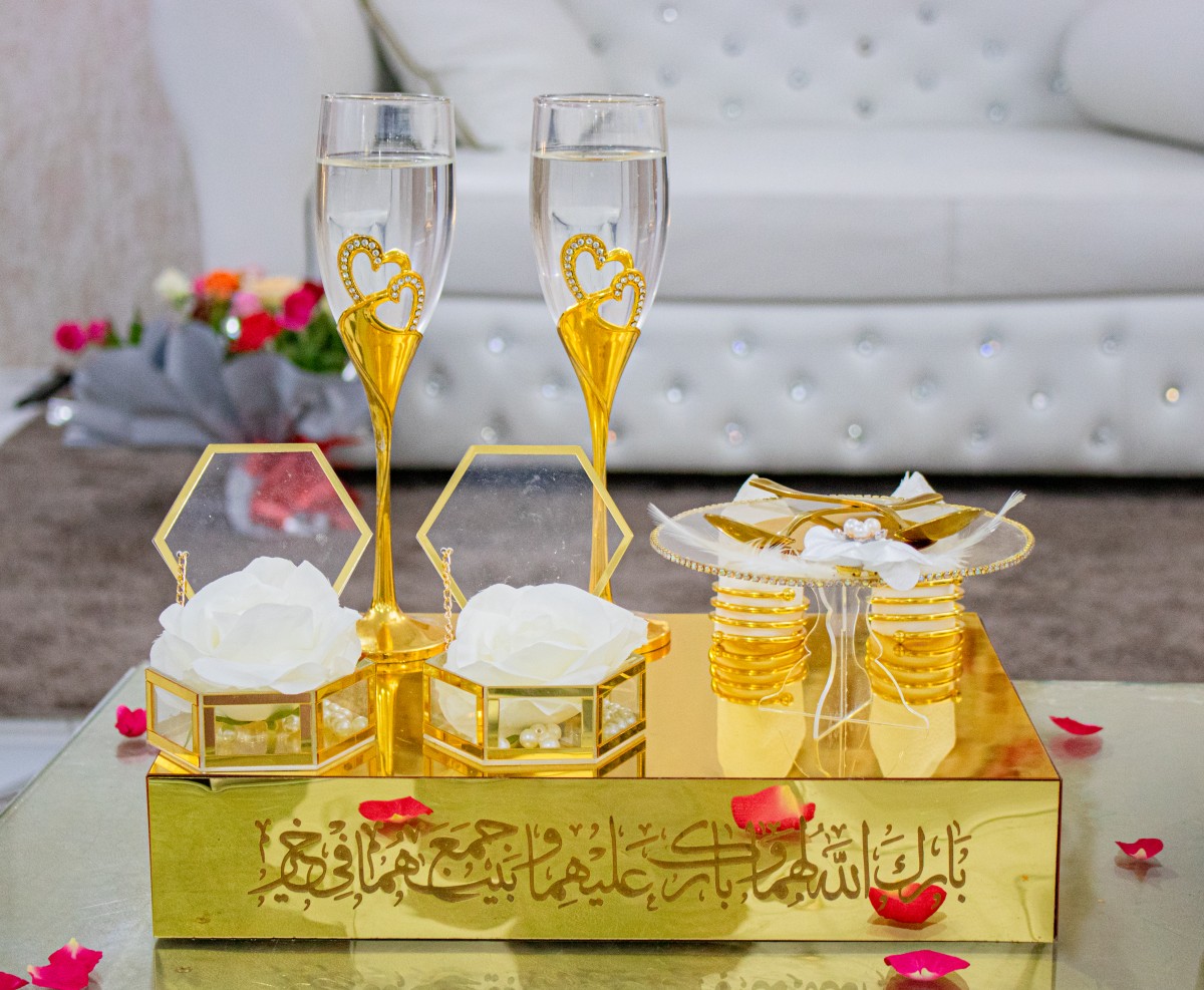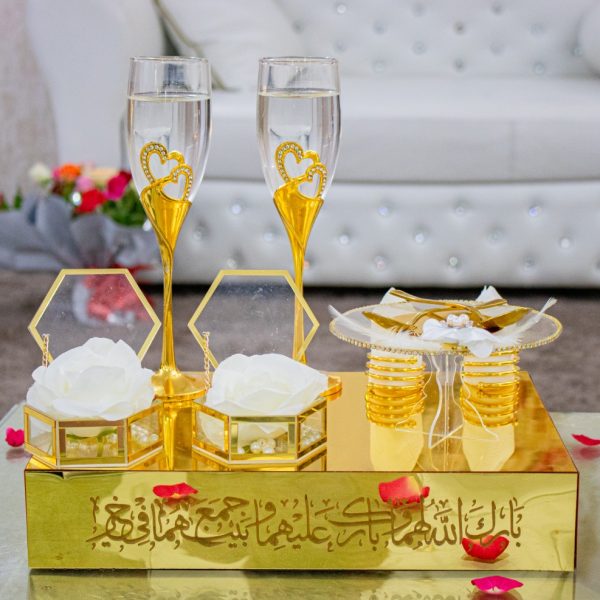 Faites de votre cérémonie de fiançailles un moment inoubliable avec ce magnifique service personnalisé. Chaque élément est conçu pour refléter l’élégance et l’unicité de votre union :