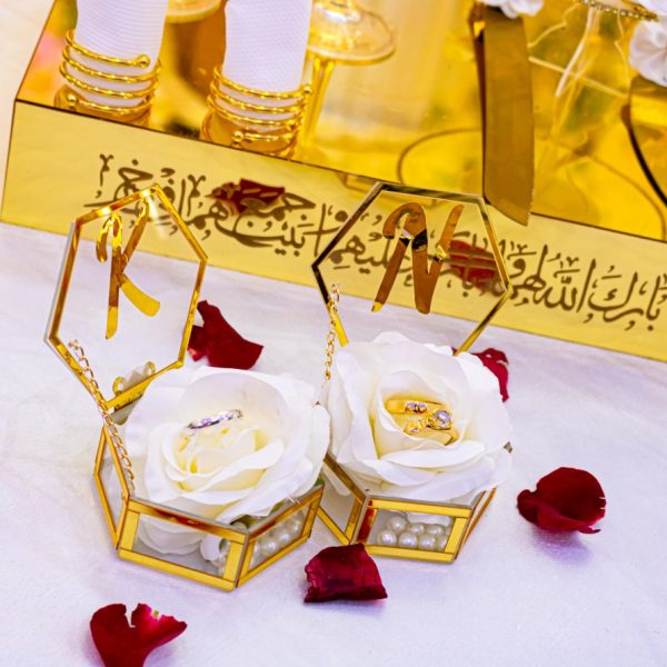 • Deux  porte-bagues avec des initiales des futurs mariés : un écrin élégant et personnalisé pour mettre en valeur vos alliances ou bagues de fiançailles.