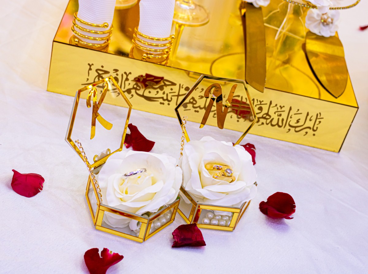 - Deux porte-bagues avec des initiales des futurs mariés : un écrin élégant et personnalisé pour mettre en valeur vos alliances ou bagues de fiançailles.